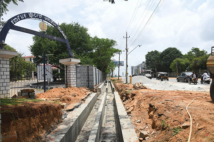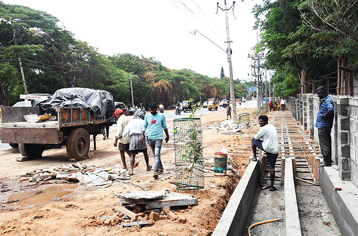 The project, taken up at an estimated cost of Rs. 4 crore, includes the construction of a central median, footpaths on both sides, stormwater drains and the installation of streetlights.