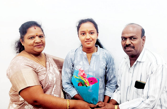 K. Chitra Spoorthy, a resident of Angadi Beedhi, Nanjangud Town, is the daughter of K.S. Krishnamurthy and Jyothi K. Murthy couple. Her father runs a puja materials store, while mother is a homemaker.