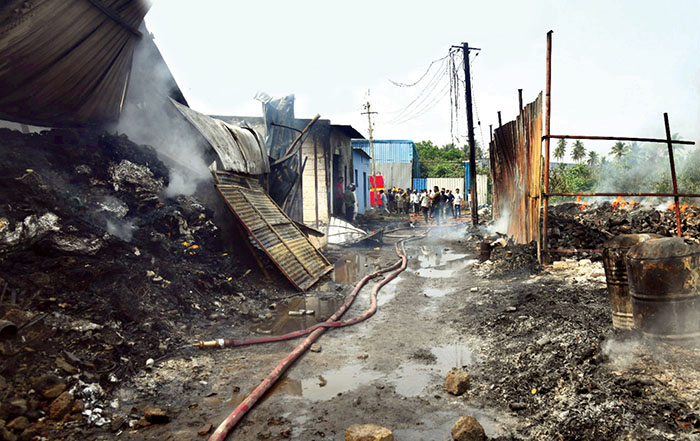 Residents and other godown owners suspect that embers from plastic wires burnt overnight may have triggered the blaze or that copper extraction activity led to the fire.