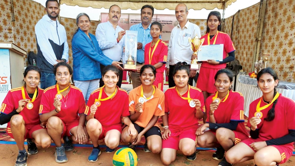Mysuru, Oct. 27 – JSS Science and Technology University (JSS STU) and Maharani’s Commerce and Management College for Women emerged as champions in the Jagadguru Sri Shivarathri Rajendra Mahaswamiji Memorial Men’s Basketball and Women’s Throwball Tournament, respectively, held at the JSS STU campus, recently. The tournament was organised by the Department of Physical Education, JSS STU.