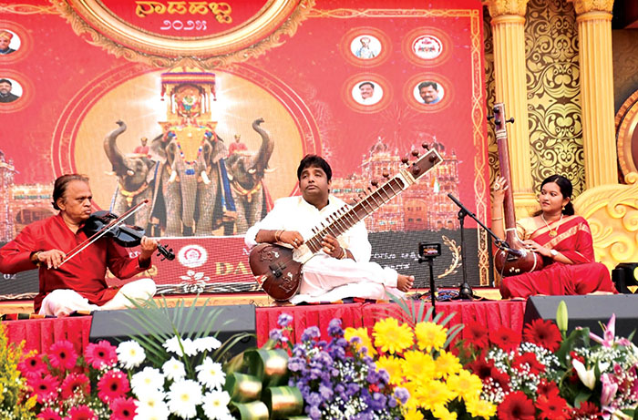 Dr. Mohasin Khan and troupe presented a Sitar concert, paying a special musical tribute to Goddess Chamundeshwari, with the rendition of ‘Igiri Nandini…’