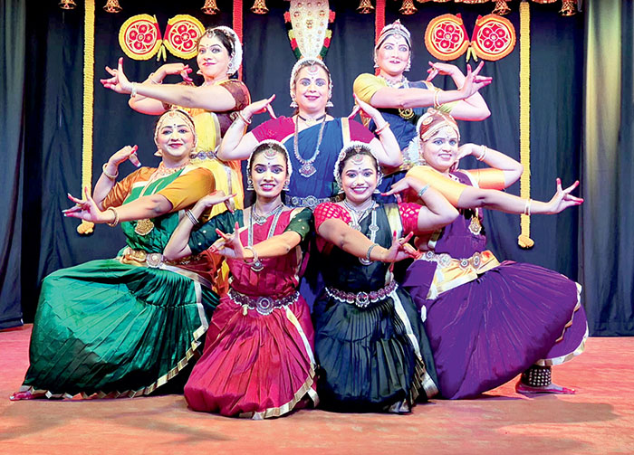 Vidu. Seema Krishnan of Krishnam Performing Arts Academy, Bengaluru and her disciples presenting Kathak performance at the 66th International Nirantara Kalemane Festival of Kumar Performing Arts Centre (KPAC), Mysuru, at Kalemane Sabhaangana in Hebbal 2nd Stage on Dec. 21. Picture right shows Dr. Radhika Kalluray of Radhika’s Academy of Performing Arts and her disciples presenting Bharatanatyam on the occasion.