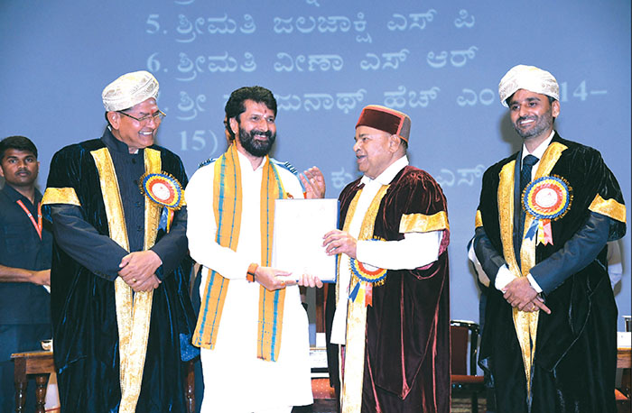 MLC C.T. Ravi, IPS Officer Geetha Prasanna, who had previously served as the DCP (Crime & Traffic) in the city, were notable among Ph.D degree recipients.
