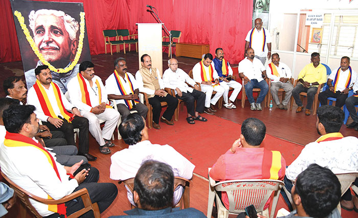 He was chairing a meeting of thinkers and leaders of several organisations, organised by Karnataka Kavalu Pade, in association with Udayaravi Kuvempu Smaraka Samiti, at Mysuru District Kannada Sahitya Parishat Bhavan, Vijayanagar in city yesterday.