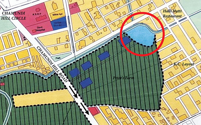 The lake shown in the map of Mysuru Development Authority (circled red).
