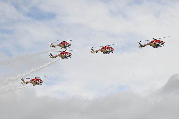 The Sarang team, which flies the indigenous Advanced Light Helicopter (ALH) Dhruv manufactured by Hindustan Aeronautics Limited (HAL), has performed across India and on global platforms, serving as a symbol of India’s aviation prowess.
