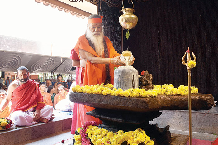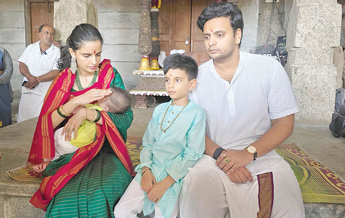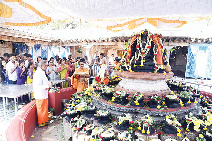 Wadiyars, the ardent devotee of Sri Trineshwaraswamy, were among the most prominent visitors, with the current titular head of the Erstwhile Royal Family of Mysore Yaduveer Krishnadatta Chamaraja Wadiyar, accompanied by his wife Trishikha Kumari Wadiyar, elder son Aadyaveer Narasimharaja Wadiyar and newly born second son, who was recently named in a christening ceremony as Yugadhyaksh Krishnaraja Wadiyar, paying his obeisance to the God. As per the Palace custom and tradition, the Wadiyars offered puja to the Shivalinga. They later visited 108-linga at Shilpi Siddalinga Swamy’s Gurukula on Ramanuja Road.
