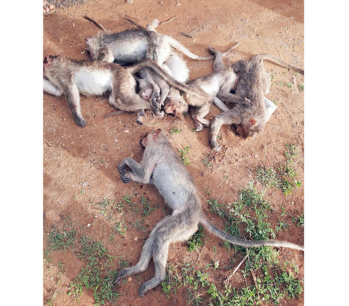 Chamarajanagar / Mysuru: In a deeply disturbing development, just days after five tigers were found poisoned in the Male Mahadeshwara Wildlife Sanctuary, a mass killing of monkeys has come to light near Kandegala in Gundlupet taluk this morning.