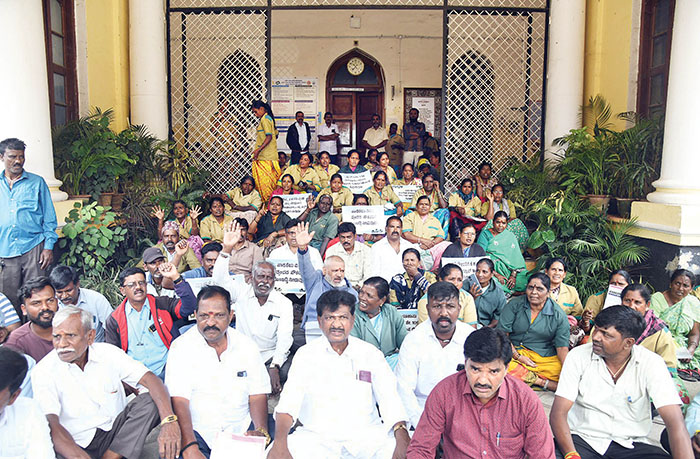 Thousands of employees of 10 City Corporations including Mysuru City Corporation boycott work demanding implementation of 7th Pay Commission