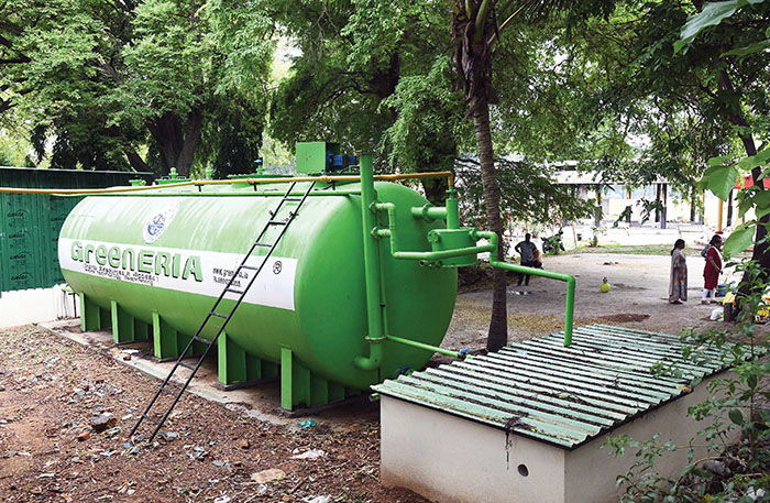 The biogas plant installed at Harishchandra Ghat, foot of Chamundi Hill.