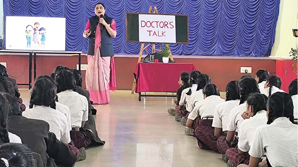 Dr. Sonia Mandappa, a renowned Obstetrician and Gynaecologist from Motherhood Hospital, Mysuru, sensitively addressed key topics like the menstrual cycle, hygiene, diet and emotional well-being. The session aimed to dispel myths, encourage open conversations and empower students with correct knowledge.