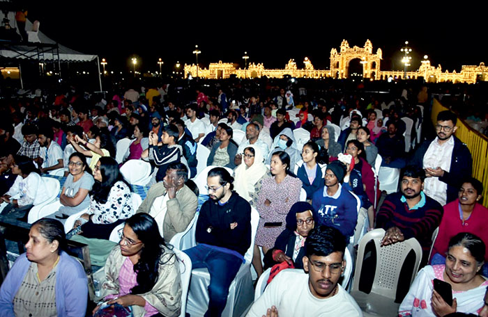 ‘Phala‑Pushpa Geetha Gaana’ was presented by P. Akash and team at the Palace premises last evening as part of the ongoing Cultural Programmes of Winter Festival – Flower Show organised by Mysore Palace Board.