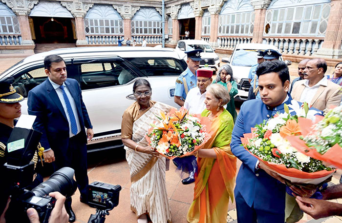 Arriving at 8.50 am through the Jayamarthanda Gate from Hotel Radisson Blu Plaza, the President was welcomed at the private residential wing of the Palace by Pramoda Devi Wadiyar. She was hosted for breakfast at her invitation. Both exchanged gifts before proceeding to the breakfast table.