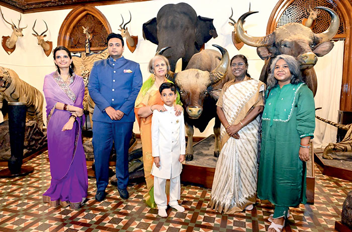 Following breakfast, Pramoda Devi Wadiyar personally guided the President through the Mysore Palace interiors, showcasing the Durbar Hall, Raja Ravi Varma’s priceless paintings and heirloom furniture passed down through generations.