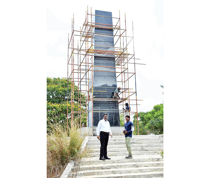 “The construction of the War Memorial is progressing rapidly, with high-quality stone donated from Chamarajanagar and Hassan, valued at crores of rupees. The initial phase of sculpting and polishing of the slabs, is now complete and the slabs have been assembled onto the memorial’s platform. The final phase of polishing work is in progress and soon the green stone slabs will be added around the base,” C.L. Anand told Star of Mysore.