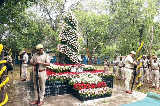 DC Lakshmikanth Reddy later laid a wreath at the Martyrs Memorial, which bears the engraved names of the fallen personnel. Floral tributes were also offered to the portraits of Srinivasan and Manikandan.