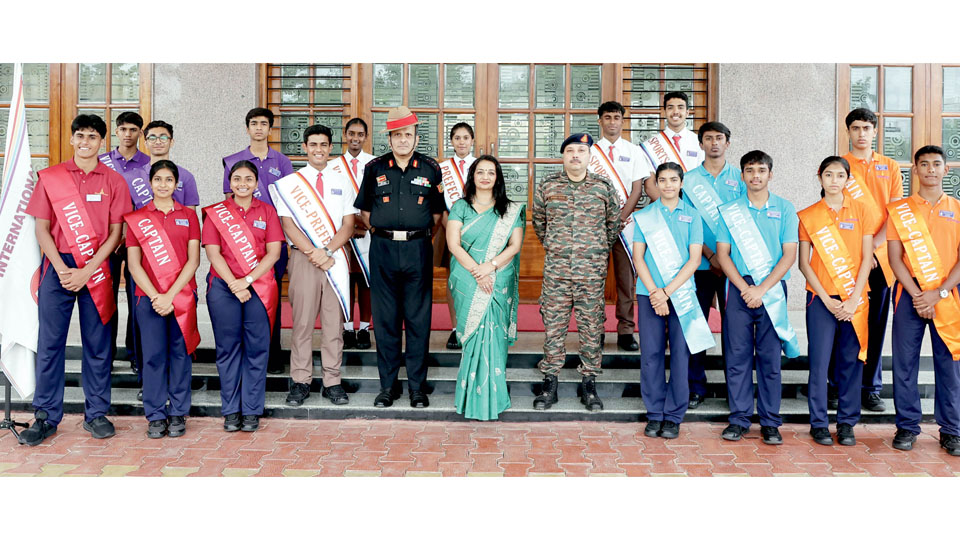 The 12th Investiture Ceremony (2025-26) of NPS International School Mysore was held recently marking the formal induction of the newly elected Student Council. Seen in the picture are (front row – from left) Samarth Dinesh, Ritisha Vindhya, M. Etasha, Somaan Bopaiah, chief guest Colonel Rohit Thakur, Principal Akhila Dinesh, guest of honour Lt. Colonel Hitesh Kala, Anica Ganapathy, Rishabh Shashidhara, Dia Kodandera and Sian S. Reddy; (back row) K. Jainam, P. Amshumanth, Parth Nitesh, Shloka Shalit, Mahati Patel, M.S. Chathush, Anish Pavan, Aditya Ashok and Devaansh Koul.