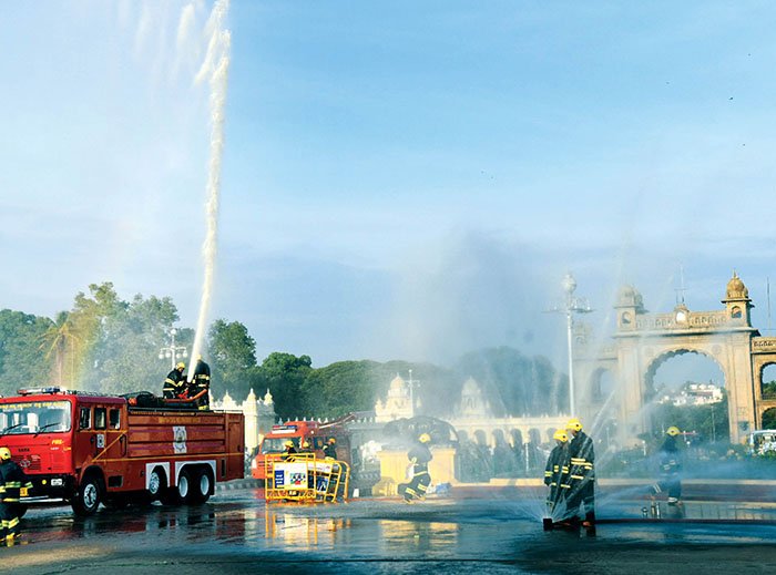 Deputy Commissioner (DC) G. Lakshmikanth Reddy, City Police Commissioner Seema Latkar, Superintendent of Police (SP) N. Vishnuvardhan, ADC Dr. P. Shivaraju, Chief Fire Officer (Mysuru Region) S. Jayaramaiah, Regional Fire Officers P. Chandan and K. Ramesh, DCPs M. Muthuraju and K.S. Sundar Raj, DHO Dr. P.C. Kumaraswamy, Department of Information Assistant Director T.K. Harish and other officials were present.