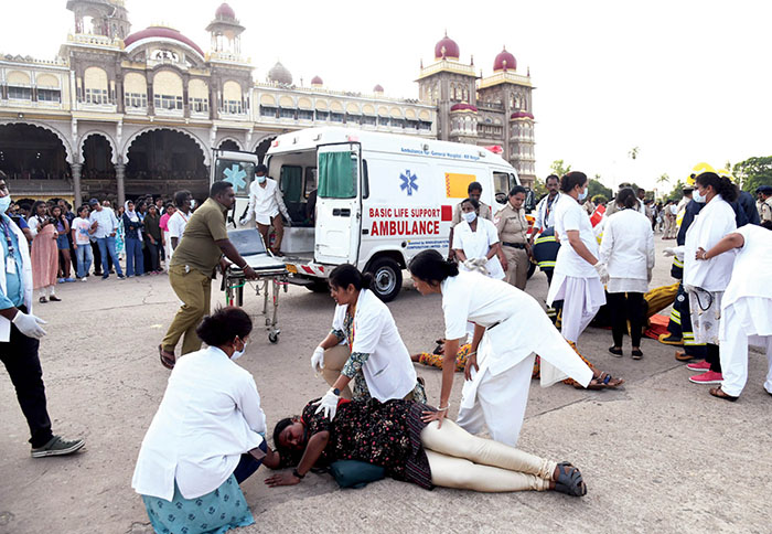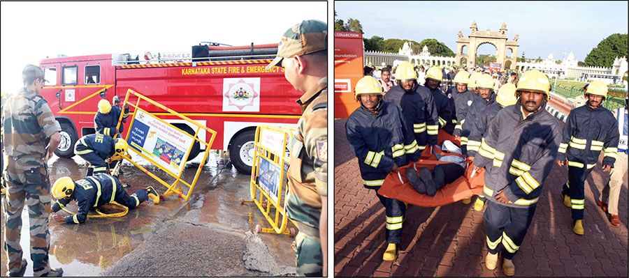 Mysuru: The Mysore Palace is among one of the most visited places in the world. As a measure to boost the preparedness to act in case of emergency situation, the District Administration, along with Police Department, CISF, Department of Fire & Emergency Services, Home Guards, Department of Health and Family Welfare,  conducted a mock drill or ‘Operation Abhyas’ as per the instruction from the Union Ministry of Home Affairs, here yesterday.