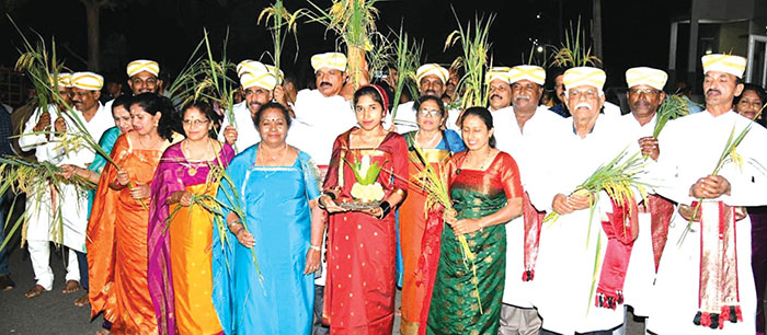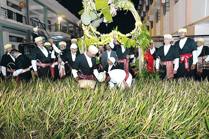 Kodagu Gowda Samaja also marked the festival at Railway Layout in Vijayanagar Fourth Stage, where they harvested paddy crop after performing the rituals.