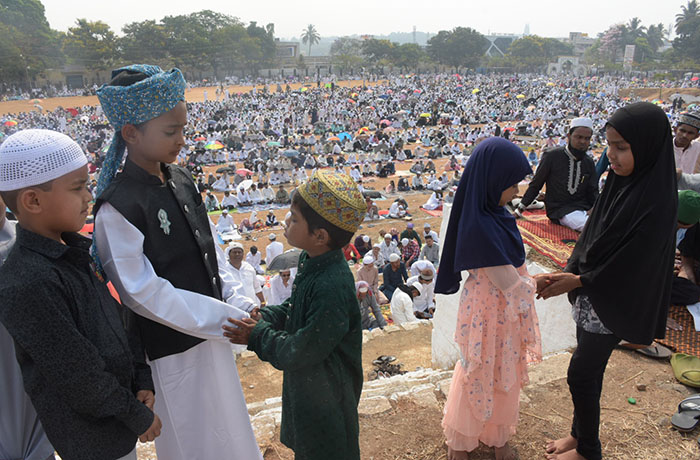 MLA K. Harishgowda, former MLA M.K. Somashekar, KPCC Spokesperson M. Lakshmana, former VTU Dean Shakeeb-ur-Rahman, senior journalist Afsar Pasha, Muslim Co-operative Bank President Showkath Pasha, former Mayor Anwar Baig Aftab, former Corporator Suhail Baig, Showkath Ali Khan, Jameel Ahmed Ashrafi, Mumtaz Ahmed and others attended the Eid prayer at Tilaknagar Eidgah Ground.
