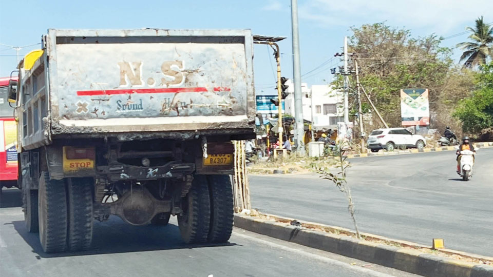 In spite of the long-standing ban on heavy-duty trucks along Hunsur Road between Premier Studios and Hinkal Ring Road junction, these vehicles continue to ply the stretch in blatant violation of traffic regulations.