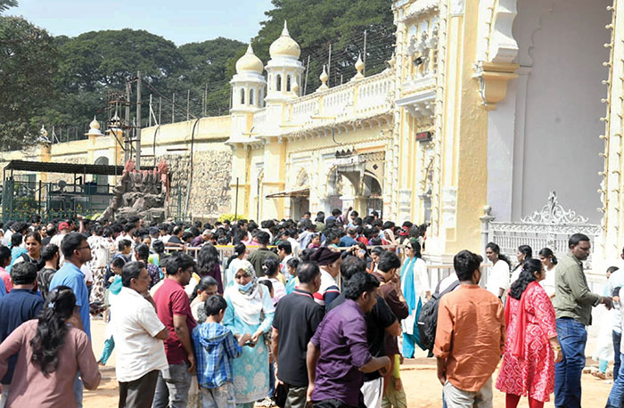 With Dec. 25 being a Government holiday and the fourth Saturday falling immediately after, many people took leave on Friday, creating a four-day weekend from Dec. 25 to 28, resulting in a steady influx of tourists to Mysuru and nearby destinations.