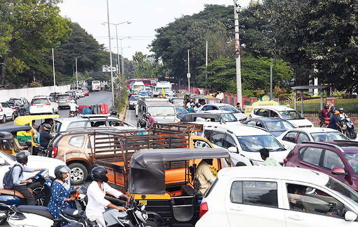 Major junctions including Gun House Circle, Corporation Circle, Basaveshwara Circle, K.R. Circle, Chamaraja Wadiyar Circle and Jayachamaraja Wadiyar Circle (Hardinge Circle) saw long queues of vehicles and prolonged congestion from morning till late at night.