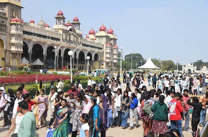 Mysore/Mysuru: Amid Christmas celebrations and an extended weekend, the cultural capital Mysuru witnessed a sharp surge in tourist footfall, with major attractions packed to capacity over the past few days.