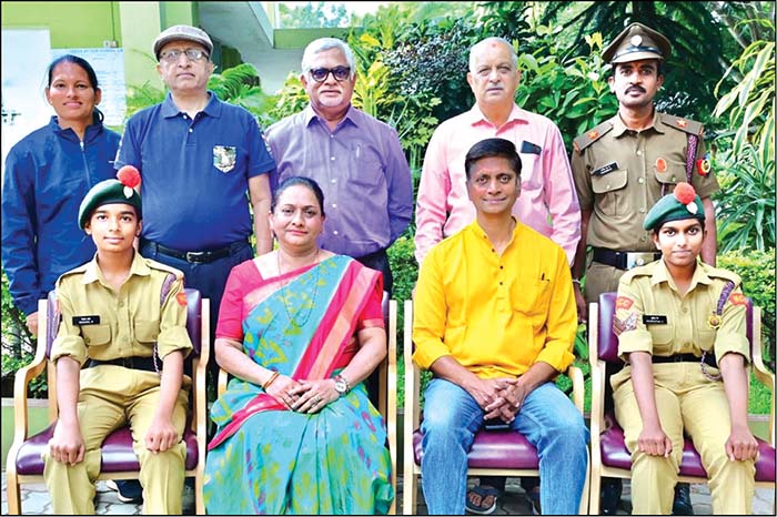 V. Poorvitha and R. Nesara, Grade 9 students of Mysore West Lions Sevaniketan School, Mysuru, who have also been selected to participate in the All India Thal Sainik Camp (AITSC) to be held in New Delhi from Sept. 1, are seen with School President Ln. Nagarajan Srinivasan, Ln. Prakash, Ln. Dr. Chandrashekar and Ln. Mukund, Principal Dr. Roopa Karumbaiah, ANO Narasimha and PE Teacher Srilatha, who conveyed their best wishes to the Cadets.Mysuru, Sept. 1- CSM Mohammed Nihal Nawaz and SGT Ahilya, Grade 9 students of Delhi Public School, Mysuru, who belong to 13 Kar Bn NCC, Mysuru, have been selected to participate in the Junior Category (.22 Rifle Shooting – 25 m Grouping event) of the NCC All India Thal Sainik Camp (AITSC)-2025, to be held in New Delhi from Sept. 1 to 12.