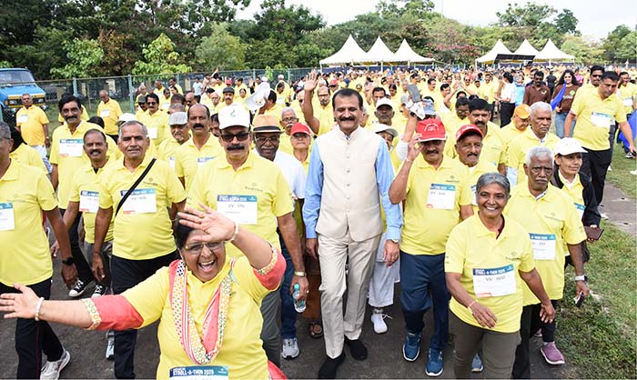 The event, organised to promote healthy lifestyle, physical activities and social interaction among the elderly people, was flagged by Pramoda Devi Wadiyar, Member of the Erstwhile Mysore Royal Family. The elderly citizens walked from the Oval Grounds till Mysore Court Complex on Krishnaraja Boulevard and took a U-turn and returned to the Oval Grounds.