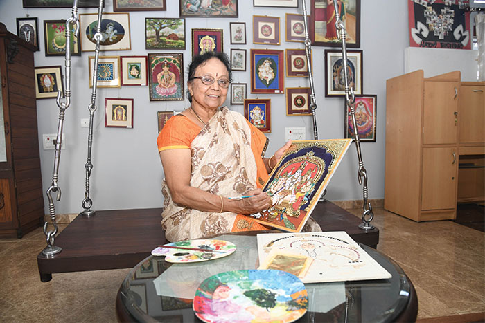 Vasantha Kumari & Surekha Tholasi: Compared to Mysore-style painting, Thanjavur art has fewer teachers today. With the semester system in colleges, students have shorter breaks and less time to pursue hobbies or traditional arts, which has reduced the number of young learners. Most of our students are now housewives and working professionals.