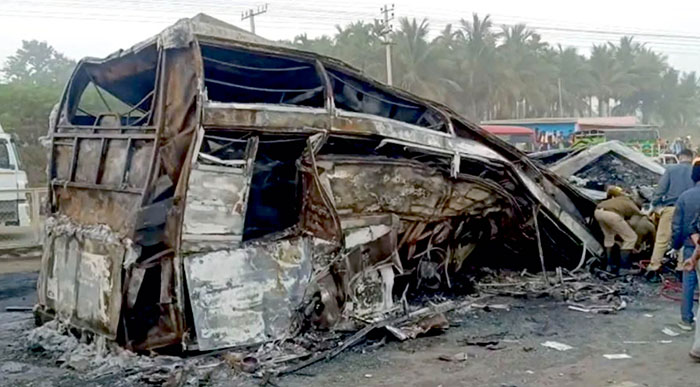 Today’s accident comes just two months after 20 people were killed in a ghastly bus fire accident in Kurnool district of Andhra Pradesh when a private sleeper bus travelling from Hyderabad to Bengaluru went ablaze within moments  after hitting a motorcycle on Hyderabad-Bengaluru Highway on Oct. 24.