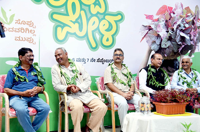 G. Krishna Prasad, Director of Sahaja Samrudha — Organic Farmers Collective, Dean of Horticulture University, Yelachahalli Yelwal, Mysuru, Dr. G. Janardhan were present along with small-screen artiste Shivaji Rao Jadhav and farmer Nagamma.
