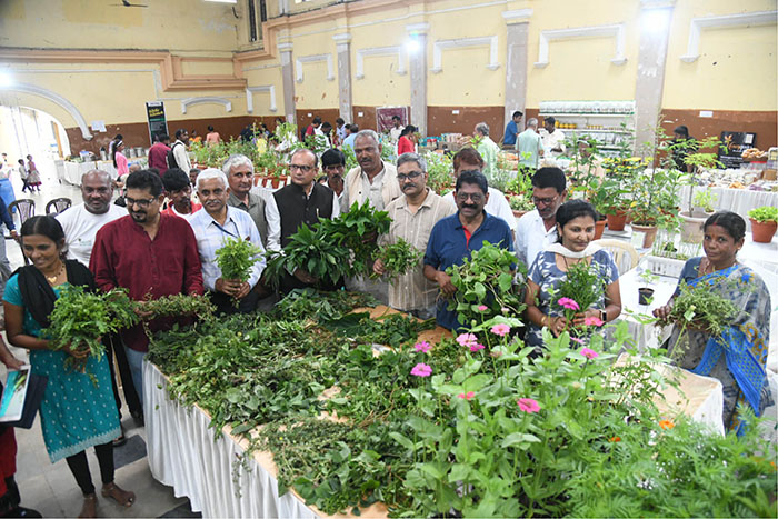 Researcher, Parisara Adhyayana Kendra, Shivamogga, Muraleedhara Gungurmale, who travels across Karnataka with his campaign ‘Ajjiya Madilu Soppina Kadalu’ (grandmother’s lap, ocean of greens), displayed over 50 varieties of nutrient-rich and medicinal greens, educating visitors on their importance and traditional uses.