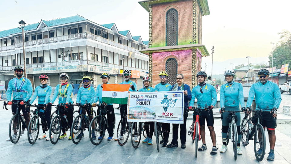 Mysuru, Oct.23 (VVH&TRR)- A team of city cyclists successfully completed the 3,600 kms cycling expedition from Kashmir to Kanyakumari on their bicycles overcoming the challenges to spread the message of social harmony and oral health.