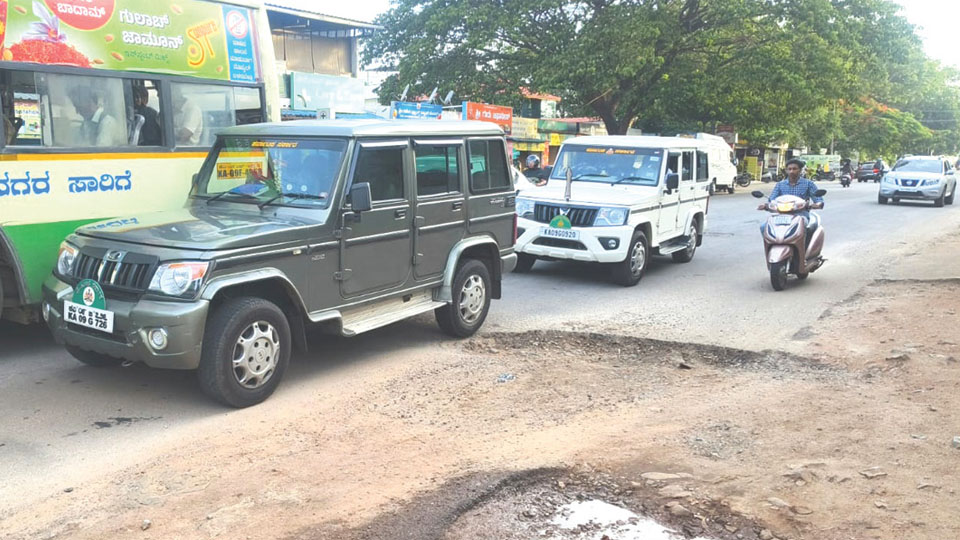Mysore/Mysuru: A crater that has developed on the main road of Janatha Nagar in T.K. Layout in city has been lurking danger. As Mysuru City Corporation (MCC) officials failed to take notice, the concerned locals have placed a dried coconut frond near the gap, to prevent any mishap. It is alleged that, 15 days have…