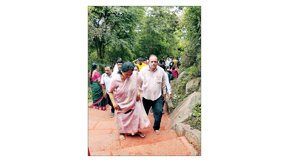 July 18, 2025Union Minister Shobha Karandlaje climbs 1008 Hill steps Mysuru: On account of last Ashada Friday special puja today, a large number of devotees descended on Chamundi Hill in city. To cater to the swelling number of devotees, the temple will be kept open till 10 pm today. The presiding deity at the Goddess Chamundeshwari Temple…