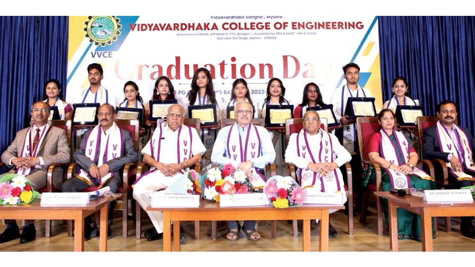 April 28, 2025Mysuru: “Degree is within the framework, but when we want to solve a problem, we need to go beyond it,” said Venkappayya R. Desai, Director, Indian Institute of Technology (IIT), Dharwad. Delivering the address during the third Post-Graduate Graduation Day of Vidyavardhaka College of Engineering (VVCE) at its Sahukar Chennaiah Auditorium here recently, Desai emphasised…