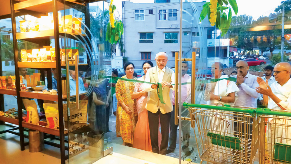 Dr. M. Jagannath Shenoy, Managing Partner, Mangalore Ganesh Beedi Works, seen inaugurating ‘The Organic World’ store at Vijayanagar 2nd Stage in city recently. Also seen are Silent Shores Resort and Spa Managing Director M. Akshaya Shenoy, Kusuma J. Shenoy and Silent Shores Resort and Spa Director (Operations) Vinay Ramesh. ‘Organic World’ offers a wide range of food, grocery, fruits, vegetables and personal care products.