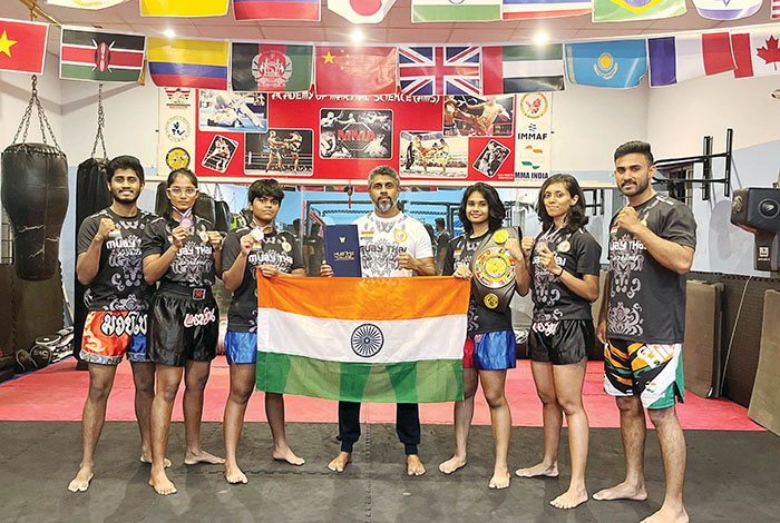 She is the daughter of Dr. Ravi and Nandini, residents of T.K. Layout and a student of VVS B.M. Shri Educational Institutions in Kuvempunagar. Namrata Ravikiran, daughter of Ravikiran and Bharathi, won silver medal in Youth Female Bantam Weight Division, K. Kavyashree, a MMA coach and daughter of Kumar and Yashodha, won silver medal in Female Bantam Weight Division and Akshatha Shanbhogue, a software engineer by profession and daughter of Ashok Shanbhogue and Uma Maheshwari, won a bronze medal in Female Feather Weight Division. On the occasion, an MoU was signed between Muban Chombueng Rajabhat University, Bangkok, Thailand, represented by Assistant Professor Dr. Chairit Siladech, President of the University and Academy of Martial Science, India, an affiliate of Muay Thai and Muayboran Sports Association (MTBSA), India, represented by Kru. Vikram, Country Delegate and Head Coach of the MTBSA Indian Team, to promote the combat sport of Muay Thai and provide valuable international experience in professional Muay Thai Education.