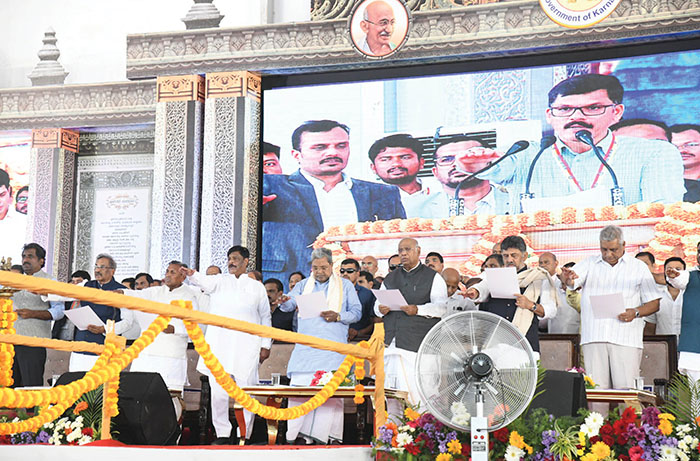 A sprawling stage has been set up to host Chief Minister Siddaramaiah, Deputy Chief Minister D.K. Shivakumar, AICC President Mallikarjun Kharge, AICC General Secretary and Karnataka in-charge Randeep Singh Surjewala, Mysuru District In-charge Minister Dr. H.C. Mahadevappa, Cabinet Ministers and senior party functionaries.