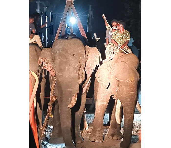 Department officials roped in tamed elephants Sugreeva, Prashantha, Kanjan, Harsha, Aiyappa and Dhananjaya from Dubare Elephant Camp for the operation.