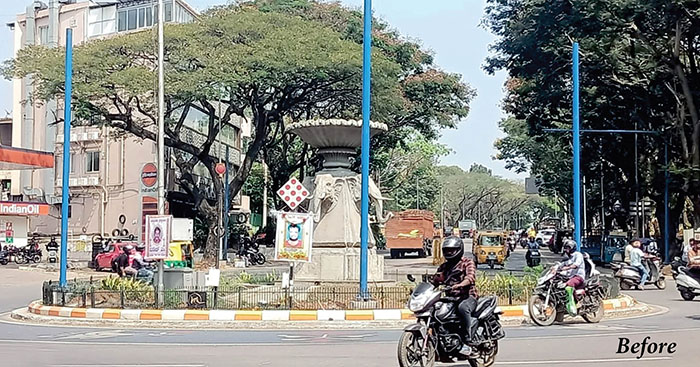 This drew objections from the public, who said placing signal poles inside the Statue Circle island not only marred its aesthetic appeal but was also an eyesore, especially considering it is one of the first Circles tourists see when they enter Mysuru.