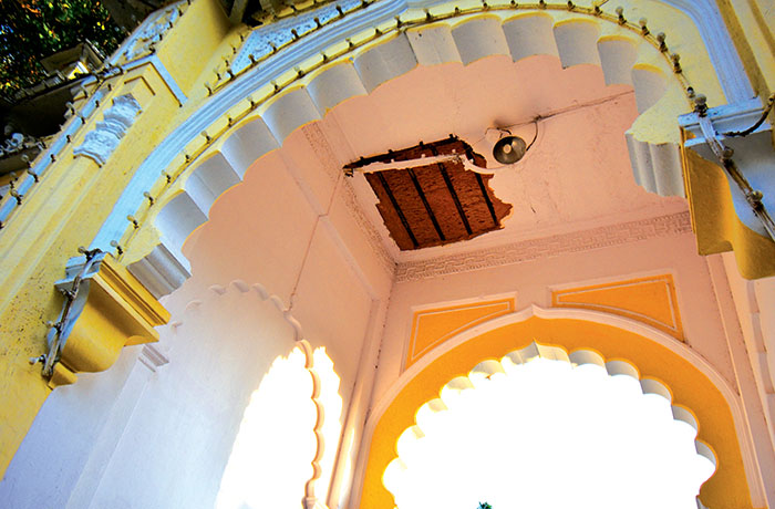 Mysore/Mysuru: A section of the concrete roof above the Varaha Gate of the world-famous Mysore Palace collapsed yesterday, triggering fresh concerns over the structural stability of the century-old monument.