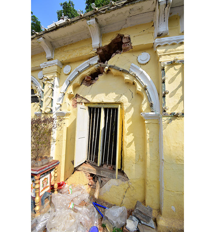 This section — once home to the Kannada Sahitya Parishat office — has seen bricks dislodged, leaving a gaping hole in the wall.