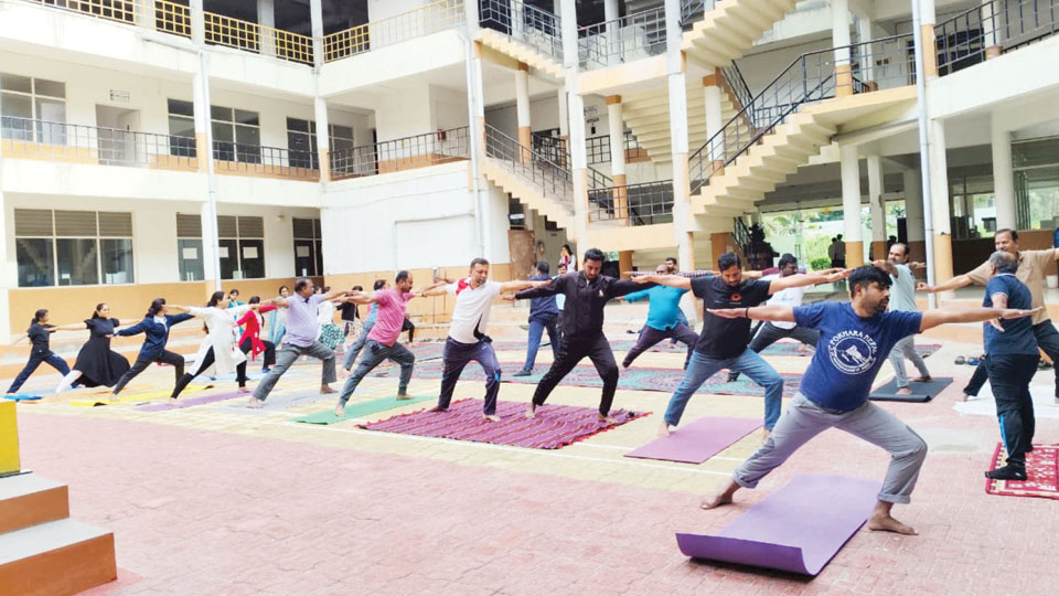 Mysuru: Seshadripuram Degree College, Hebbal, Mysuru, in collaboration with the IQAC, NSS, NCC, YRC, Gandhi Study Centre, Chethana – Alumni Association, AICTE, Yoga Sangama and the Department of Physical Education and Sports, had organised a Yoga Session on the theme ‘One Earth, One Health’ at the College Seminar Hall, to celebrate International Day of Yoga on June 21.